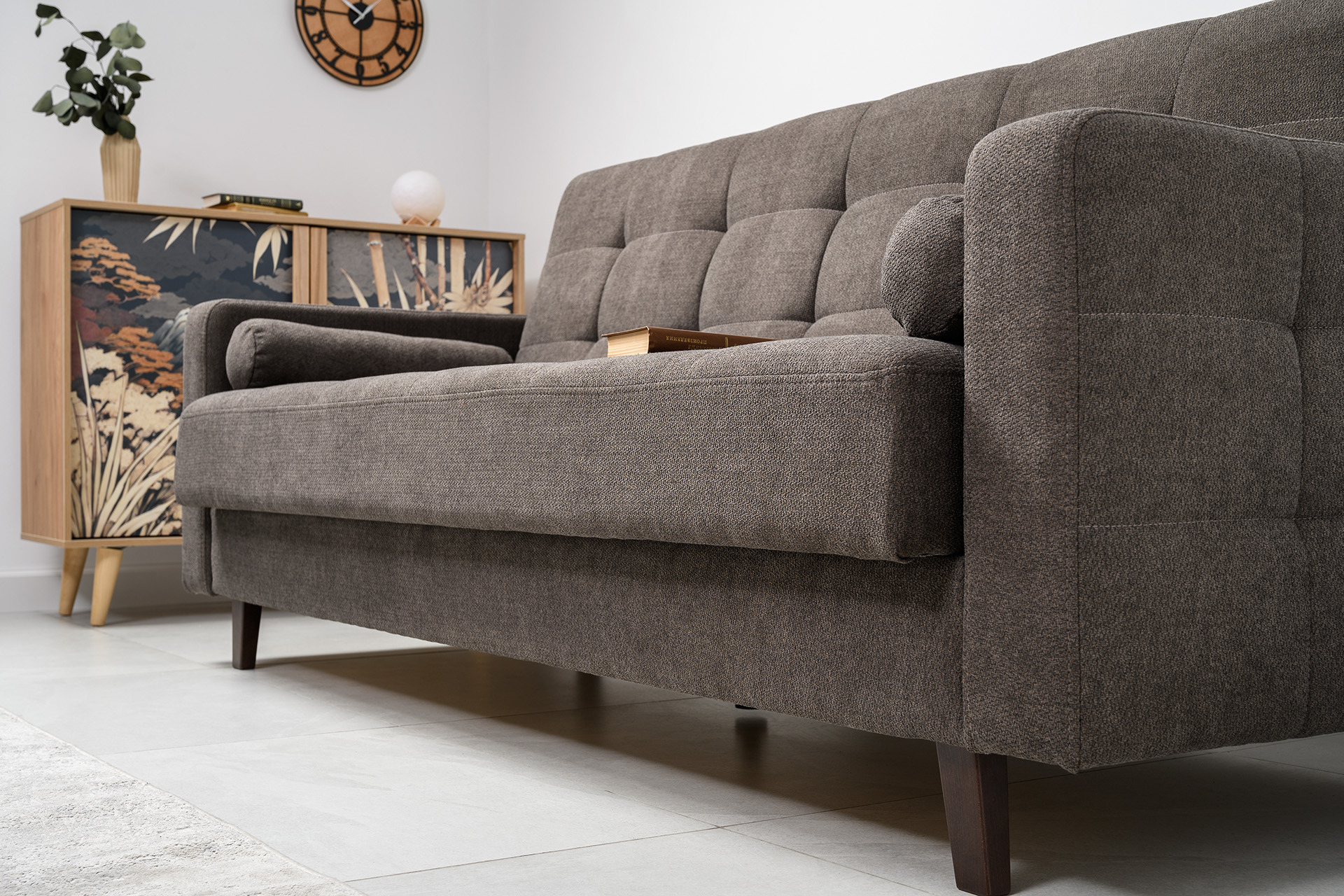 Сдержанная форма скандинавского минимализма дивана Эмили — решение для ценителей лаконичного дизайна. Усовершенствованная система комфорта в виде комбинации ортопедических гнутоклееных лат и независимого пружинного блока идеально подойдет для ежедневного использования.