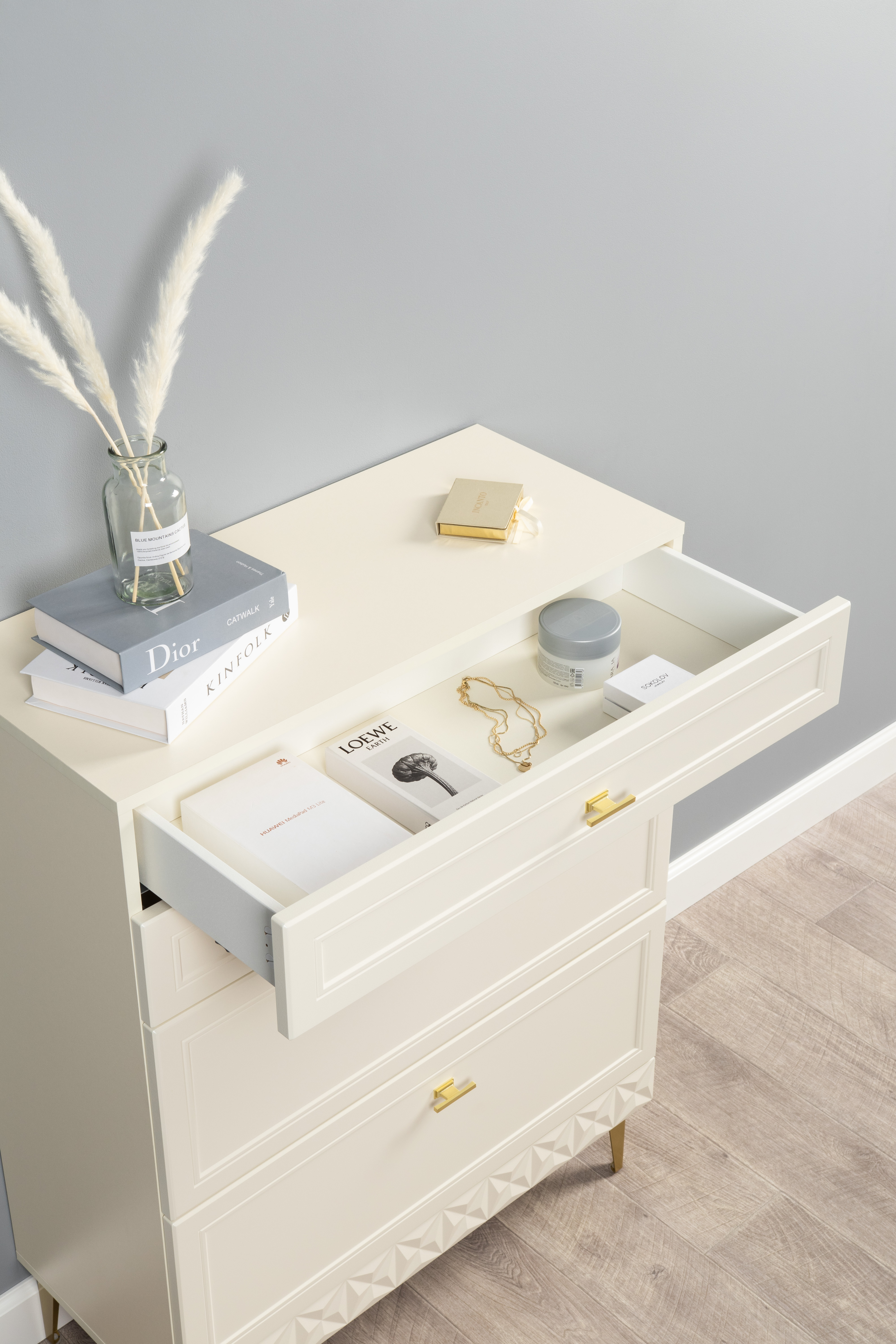 Комод Бостон 13.115 дуб эндгрейн элегантный, милк рикамо софт ПВХ