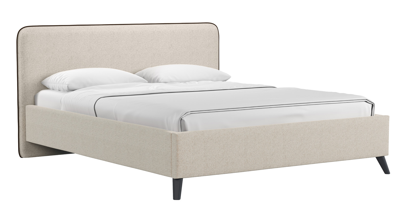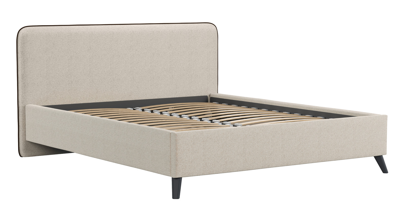Кровать Миа 160 рогожка светло-бежевый, кант желтовато-коричневый с ортопедическим основанием и подъемным механизмом