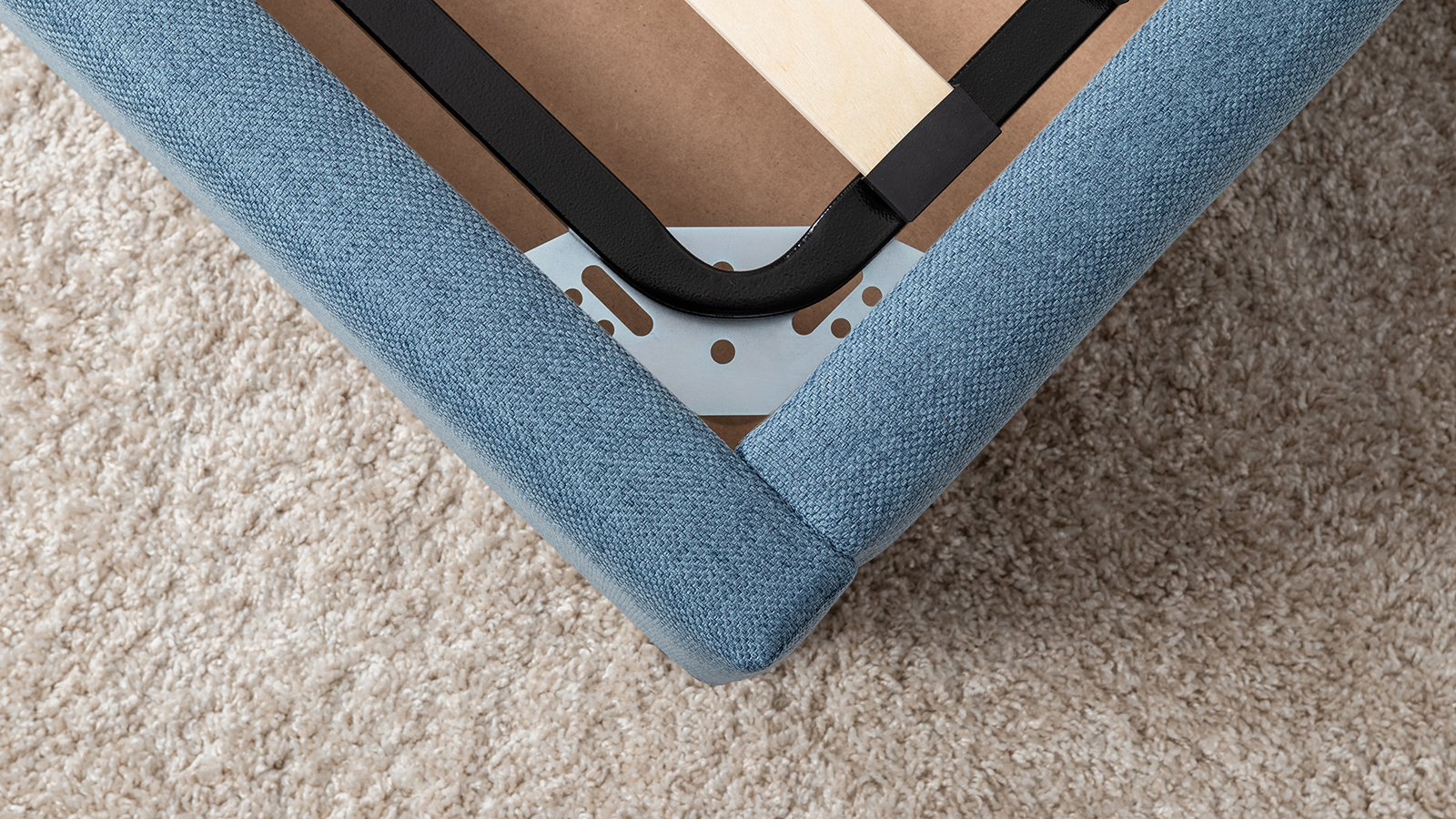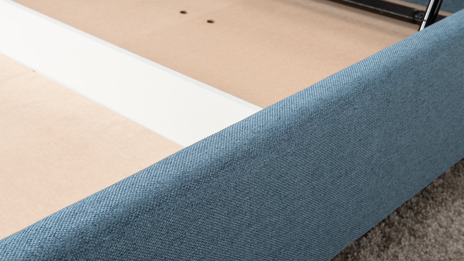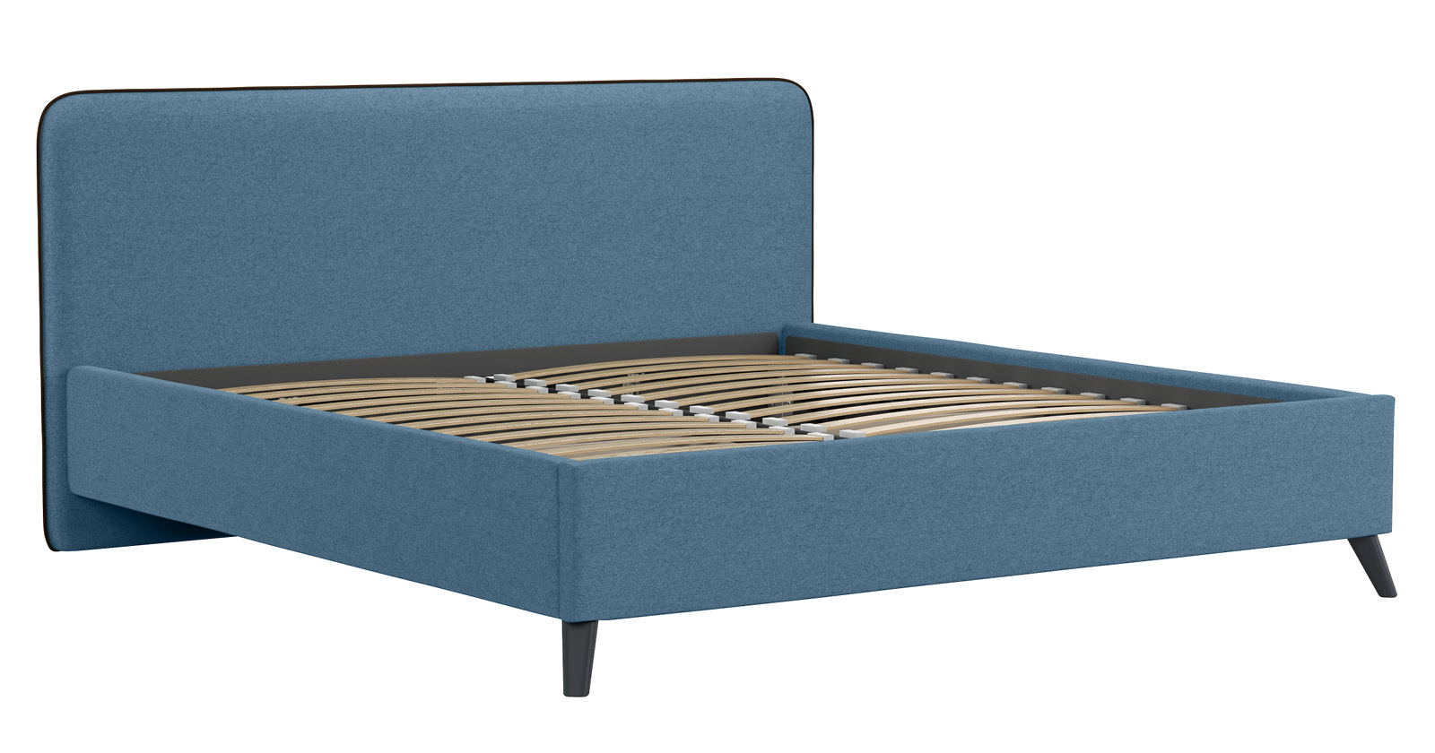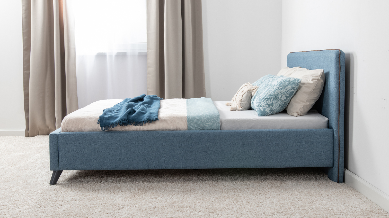 Кровать Миа 180 светло-синий, кант желтовато-коричневый с ортопедическим основанием и подъемным механизмом