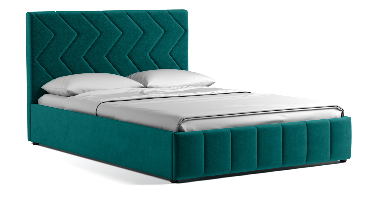 Кровать Милана 160 велюр сине-зеленый с ортопедическим основанием и подъемным механизмом