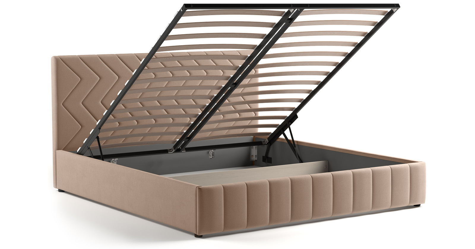 Кровать Милана 180 велюр бежевый кофейный с ортопедическим основанием и подъемным механизмом