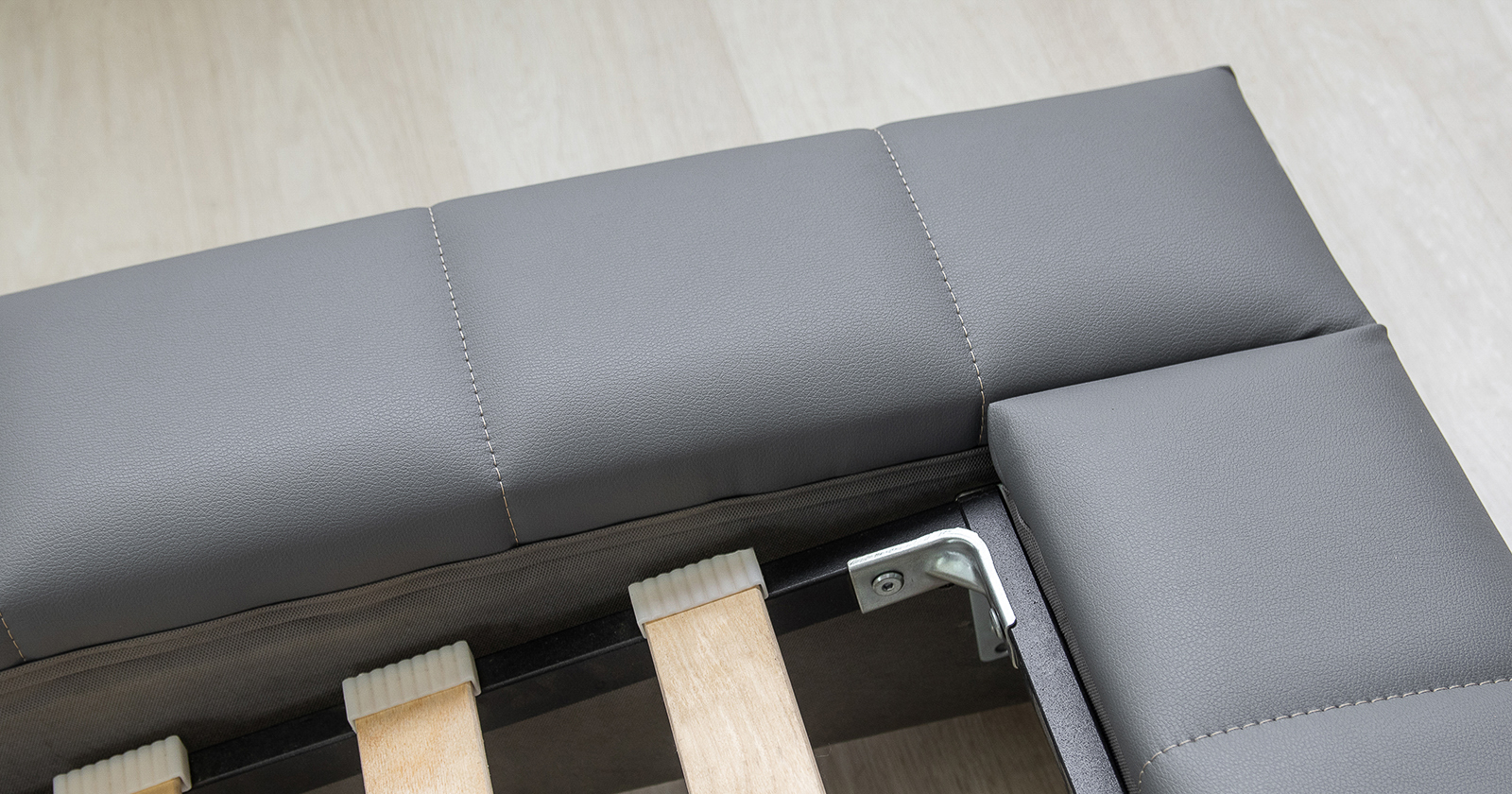 В комплект входит ортопедическое основание. Изготавливается в кожзаме белого, бежевого и темно-коричневого цвета. Декоративная отстрочка.