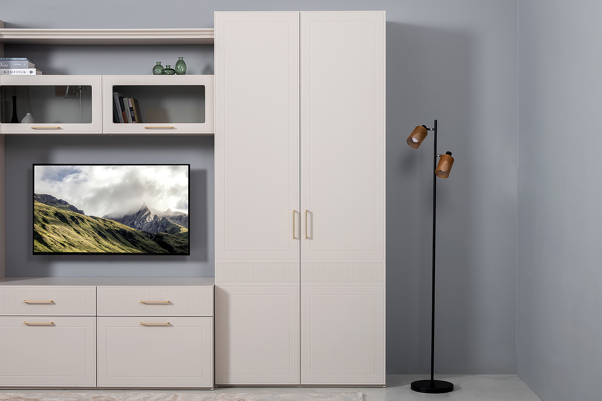 Тумба под ТВ Ричфорд 16.61 кашемир 5981 BS, моно керамика D166-2 ПВХ, белый PE шагрень