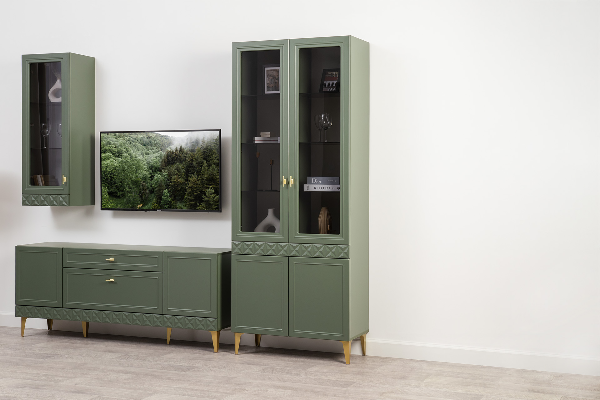 Шкаф-витрина Марион 16.397.02 дымчатый зеленый K521, олива шагрень AG 1050 ПВХ